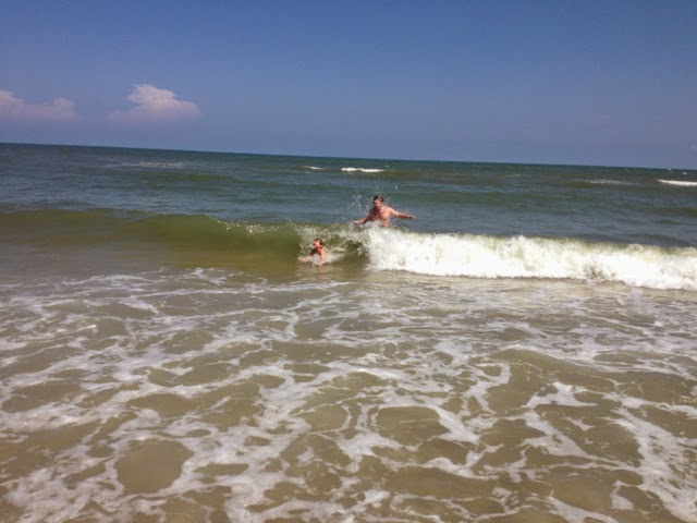 here are a couple good ones of Daddy and Josiah riding the waves together!
