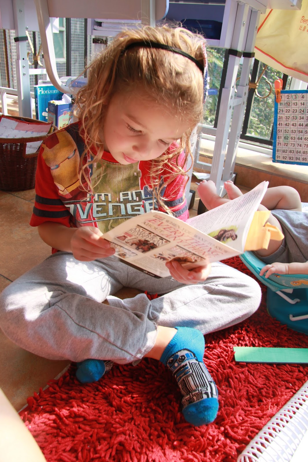 Below, Evie Joy working on facts…we swing to fact songs these days!
