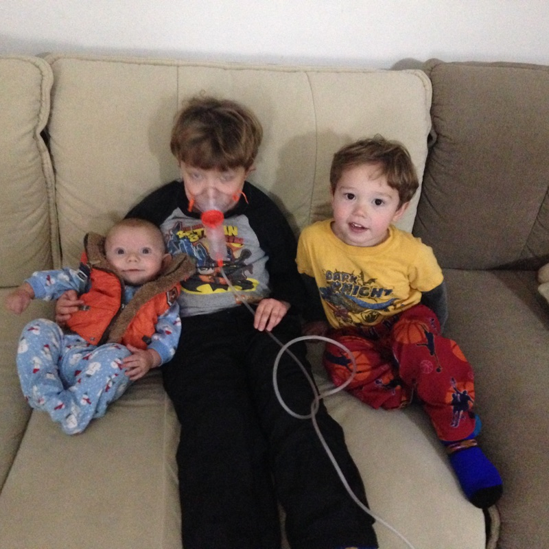 WE will go soon for shots and a weigh-in! He is napping much better, normally 1-2 hour and 1-1 hour, sometimes 2-1 hour naps! He is getting more and more content not being held, bounced…likes to look at books, play with his toys, jump in jumper, sit in swing and watch baby Einstein, sit in Bumbo and play, loves watching the bigs play!